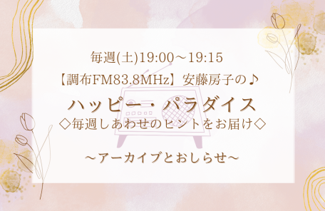 🍀調布FM「安藤房子のハッピー・パラダイス」(毎週土曜日19:00~19:1…