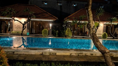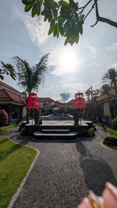クタのメインストリートのポピーズ通り沿いにあり、クタビーチからすぐ。いろんな旅系サイトにビーチから300mとか400mなどと書いてあったと思う。agodaの評価は8.3。もっと高い評価のホテルもあるかもだけど、ここのホテルのクチコミには「すごく悪いこと」は書いてない。リピしたい人が多いのが決め手でした。