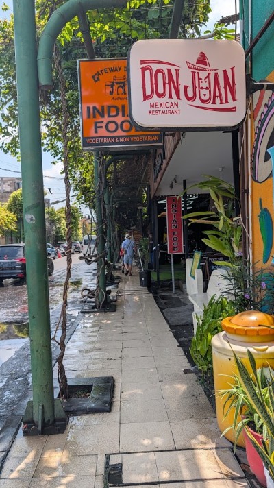 交差点でたちつくしながらふと気づくと、目の前にはカラフルかわいいメキシコ料理屋さん「DON JUAN」。ドン・ファンと読むのね?
