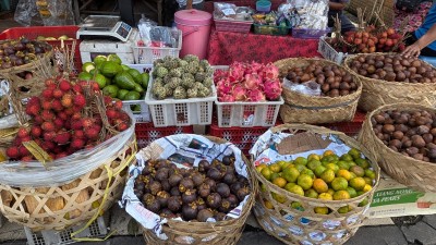 🛩クタの朝市でライチやマンゴーなどフルーツやまほどで300円