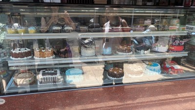 濃厚そうなケーキがズラリ。フルーツなどもいろいろ並んでいて、地元の方たちもこのスーパーには普段から行くことがあるそう。中には入らなかったけど、今度はぜひ入りたい。どんな商品があるのかよくみて、観光客用のスーパーとの価格差も見てみたい。