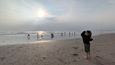 波をいっぱい動画におさめて、砂浜を左のほう……つまりレギャンとは逆のほうへしばらく歩きました。リリの写真も私の写真もいっぱいいっぱい撮りました。もう、この時点で、今回の旅の目的の半分は達成した気分。鮮やかなサンセットを見ることはできなかったけど、暗くなるまでビーチを楽しんだ。