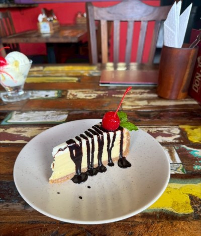 リリのチーズケーキにはチョコソース。奥の左手に見えるのが私のアイスクリーム。このお店に入る直前にコンビニでコーラなどを購入してゴクゴク飲んだのでドリンクはオーダーせず。それもあってか1644円と大変リーズナブルだったし、とてもおいしかった。お昼や夜にしっかり食べにまた行きたいな~。食べログ評価、もっと高くてもいいと思います。