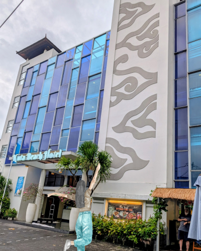 この前あたりの左手にフォーポイントバイシェラトンという大きなホテル。4つ星なのに宿泊が12000円くらいから、クタのこの地域の4つ星は4000円くらいから宿泊できるホテルもあるけれど、おなじ4つ星でもずいぶんお値段が違う。でもその分、いろいろサービスが違うんでしょうね。