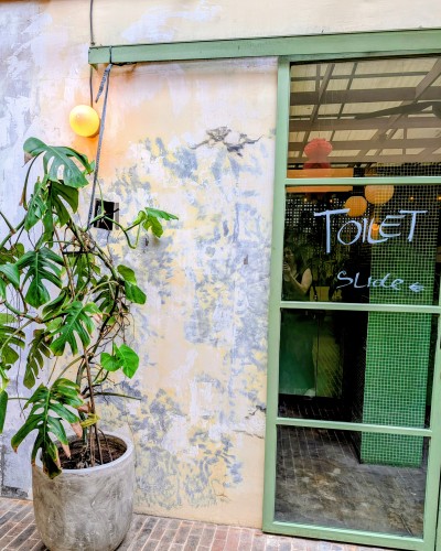 でも、なんの宛もない。調べもしないでホテルを出てしまってすこし後悔。でも、すこし歩くと右手にカフェ。リリが「ここにする?」と。すごく落ち着いていい雰囲気。でも、人がひとりもいない……「あっちは?」道向かいに……つまりは歩いている方向の左手にもう一軒のカフェ。そちらは人が入っていた。