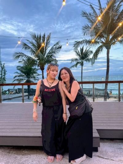 お店を出て、すぐのところでまた海を見て、写真を撮ろうとしていたらスタッフさんが声をかけてくれて、撮ってくれた。うれし~。この左側ではDJさんがゆるくDJしていた。