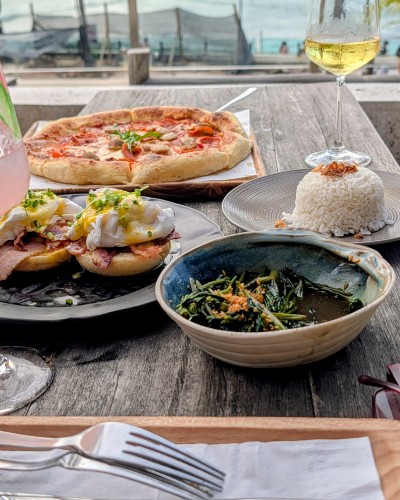 曇っていたのに、レストランと海と空が一体化していて素晴らしい。リラックス……。ほんのすこし、チャングーのオールドマンズカフェに似ているけど、こちらのレストランのほうがダイレクトにビーチを感じられる。