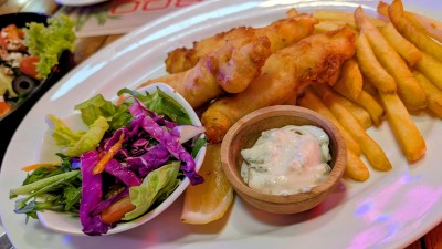 フィッシュ&チップスやお肉やサラダ。ゆーきくんが上手に切り分けてくれて……