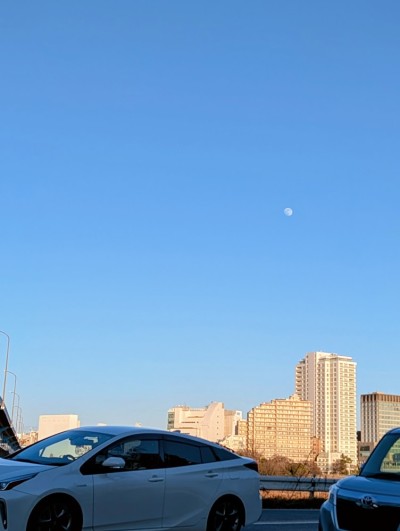 夕方だけど昼月。