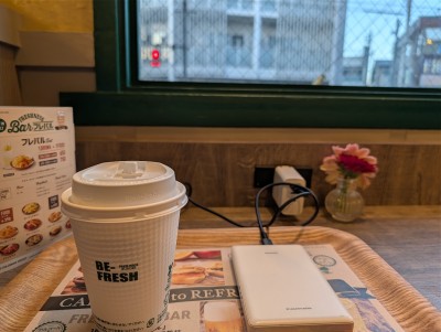 駅前でお茶できるのがここのみ……? なのでフレッシュネス一択。と思っていたら、あとで、駅の逆方向にマックとサイゼリヤがあるのに気づきました。日野って大きな駅かと思っていた。静かでちいさな駅です。改札もひとつ。