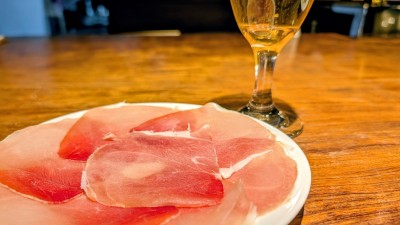 ハモンセラーノ1/2、550円。割と量があるのでリーズナブルです。