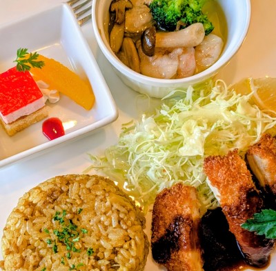 サラダとスープおかわり自由。
