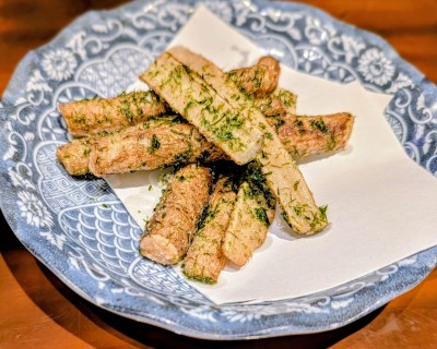 ごぼうのフライ。アオサがいい! こういうメニューがあるとうれしいですね。前にごぼうの唐揚げを作ろうとしたけど大失敗。焦げたのに中はかたい……みたいなことになり、それ以来、自分では作りません。外食バンザイヽ(^o^)丿