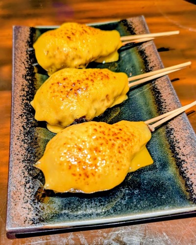 つくねのチーズ焼き~。これ、けっこうお腹いっぱいになってからオーダーしたけどペロッと食べちゃった。舌先にまとわりつくまったりチーズが濃厚で、中にコリコリした……軟骨かな? 触感がよかったです。